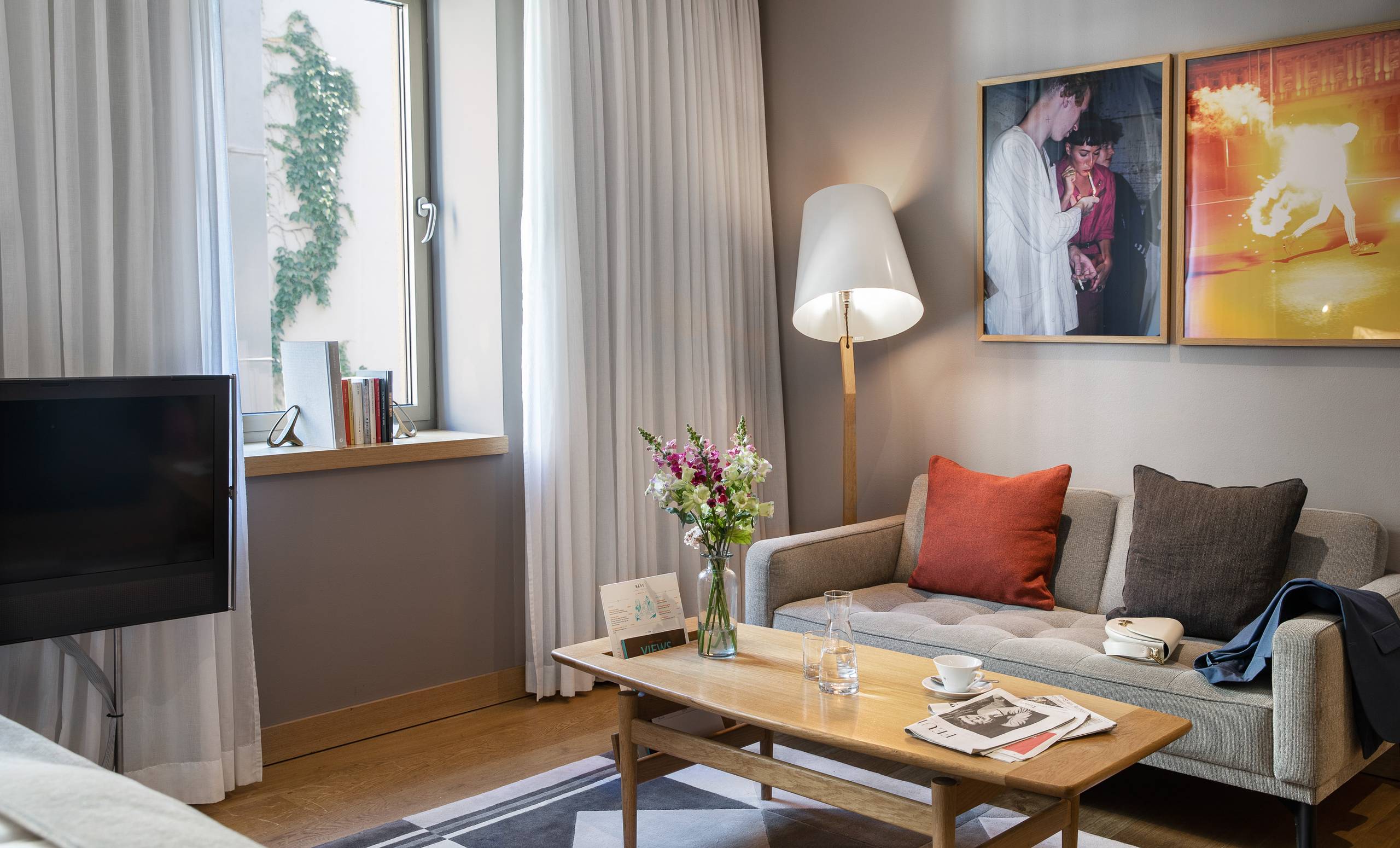 The 23 to 25–square-meter rooms offer everything you could dream of for a relaxing holiday in the city. Here is a comfortable sitting area with a Wittmann couch and a small library with select Austrian literature...